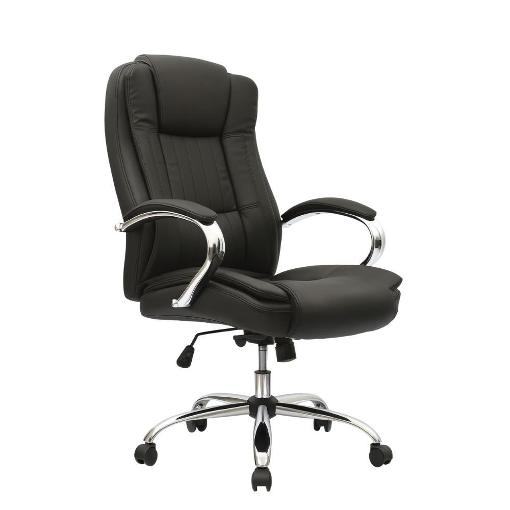 • Brazos fijos cromados con tapizado en cuero sintético, aportando un toque elegante y mayor confort al usuario